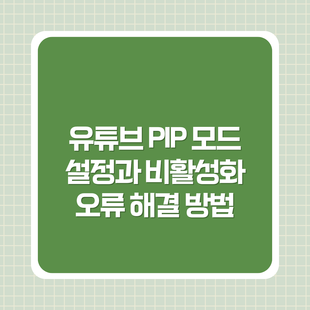 오늘날 많은 사람들이 스마트폰을 이용해 동영상을 시청하면서 다른 작업을 동시에 진행하는 멀티태스킹을 즐기고 있습니다. 그중에서도 유튜브의 PIP(Picture-in-Picture) 모드는 필수적인 기능으로 자리 잡았습니다. 하지만 종종 PIP 모드가 비활성화되거나 제대로 작동하지 않는 경우가 발생하곤 합니다. 이번 글에서는 유튜브 PIP 모드를 설정하고 비활성화 오류를 해결하는 방법을 상세히 안내하겠습니다.