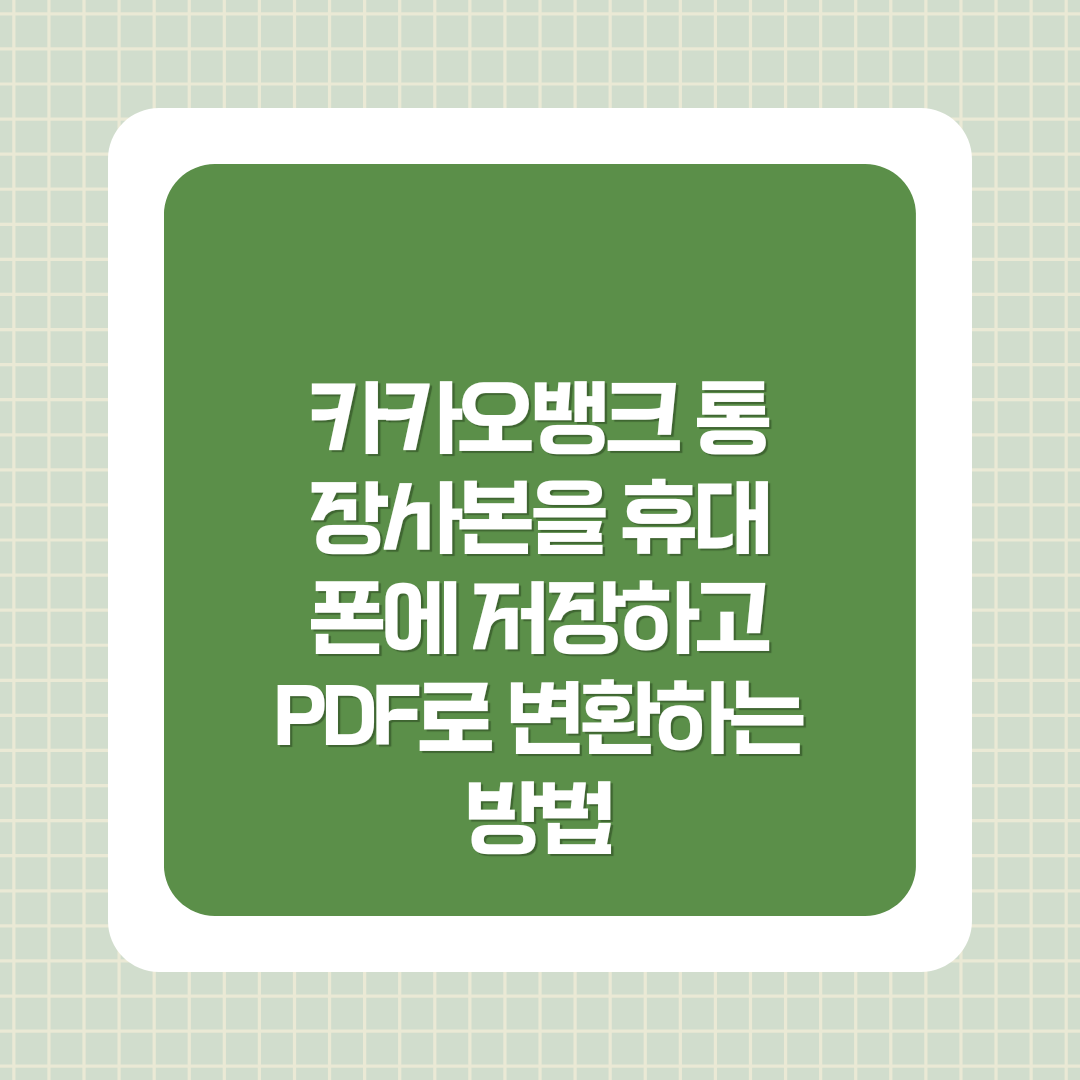 카카오뱅크는 국내 사용자들에게 모바일 중심의 금융 서비스를 제공하는 대표적인 디지털 은행 중 하나입니다. 이 은행은 모바일 앱을 통해 다양한 금융 서비스를 제공하며, 사용자 친화적인 인터페이스와 편리한 기능으로 많은 이들에게 사랑받고 있습니다. 특히, 카카오뱅크는 통장사본을 휴대폰에 이미지 파일로 저장할 수 있는 기능을 제공하여, 별도의 출력 없이도 언제 어디서나 손쉽게 통장사본을 확인하고 관리할 수 있게 해줍니다. 더 나아가, 통장사본을 PDF로 변환하여 다양한 용도로 활용할 수 있는 방법도 있습니다. 이 글에서는 카카오뱅크 통장사본을 휴대폰에 저장하고, PDF 파일로 변환하는 구체적인 절차를 자세히 설명하겠습니다.