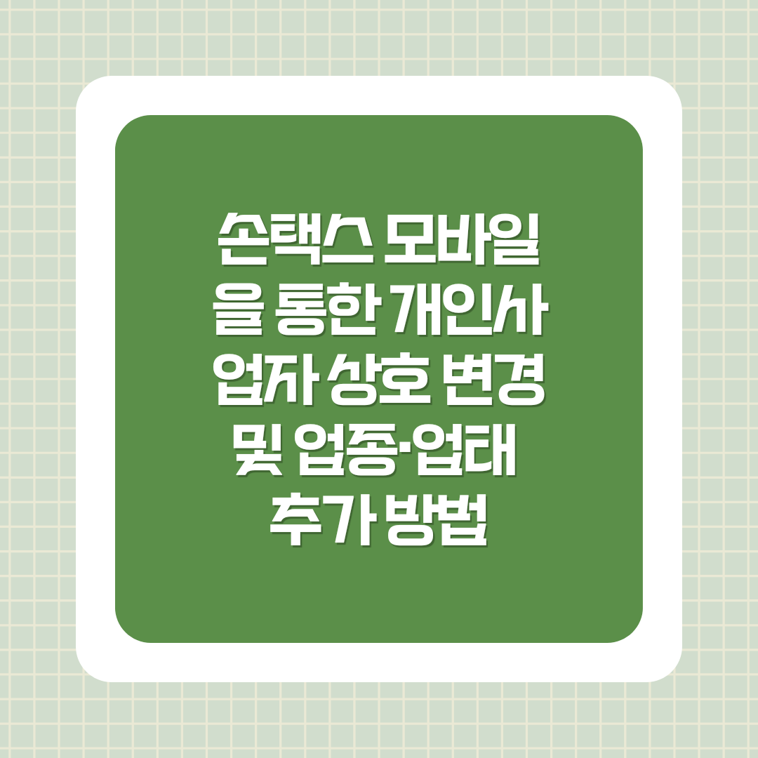 국세청에서 제공하는 손택스 앱은 개인사업자들이 세무 행정 절차를 간편하게 처리할 수 있도록 도와주며, 특히 상호 변경과 업종·업태 추가와 같은 복잡한 절차를 간소화해줍니다. 개인사업자로서 행정 절차에 얽매이지 않고 사업에만 집중할 수 있는 환경을 만들기 위해, 손택스 모바일을 적극적으로 활용해 보세요.