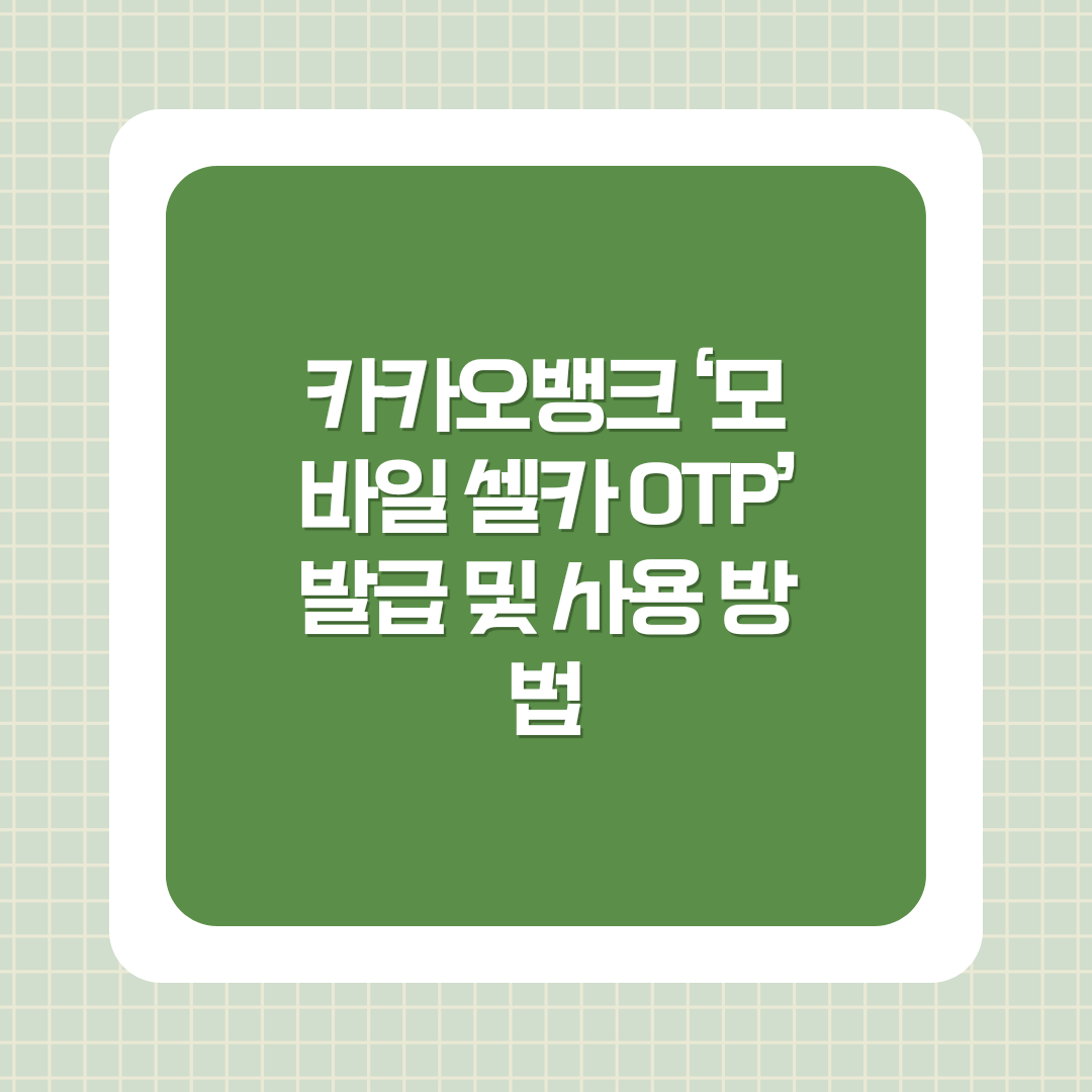 셀카 OTP를 발급받는 과정은 간단합니다. 카카오뱅크 앱을 통해 몇 단계만 거치면 누구나 쉽게 발급받을 수 있습니다.