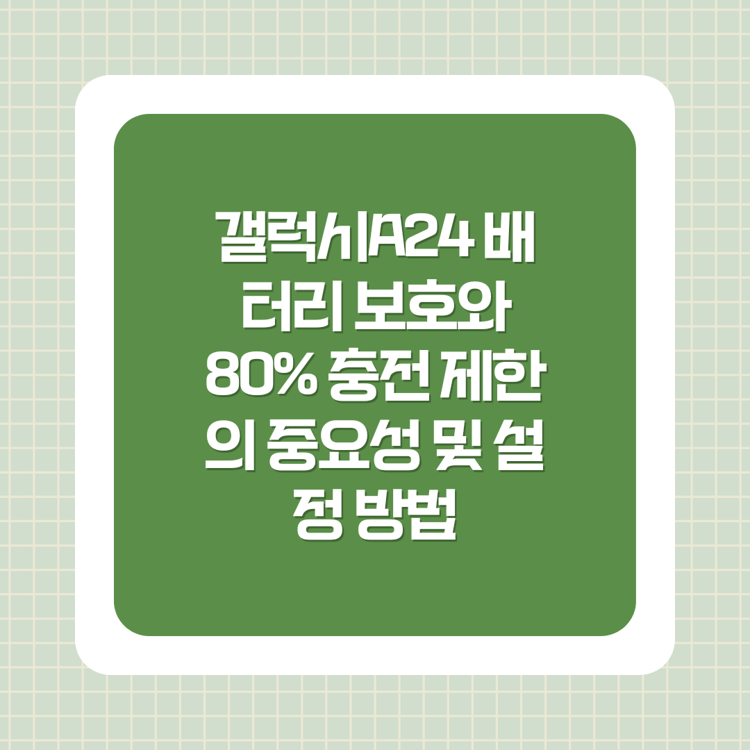 이 설정을 통해 갤럭시A24는 배터리가 80%까지만 충전되고, 과도한 충전으로 인한 손상을 방지할 수 있습니다.