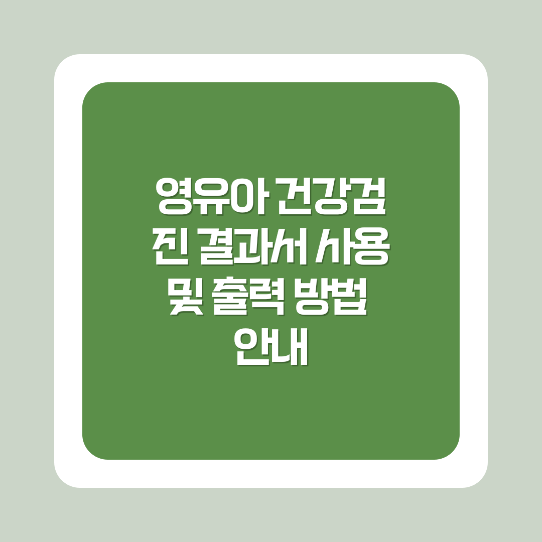아이의 건강을 지속적으로 관리하고 예방하는 데 중요한 역할을 하는 것이 바로 영유아 건강검진입니다. 영유아기에는 건강 상태를 주기적으로 점검하고, 조기에 이상이 발견되면 필요한 조치를 빠르게 취하는 것이 중요한데요. 오늘은 영유아 건강검진 결과서를 어떻게 활용할 수 있는지, 그리고 인터넷을 통해 결과서를 출력하는 방법을 상세하게 알아보겠습니다.