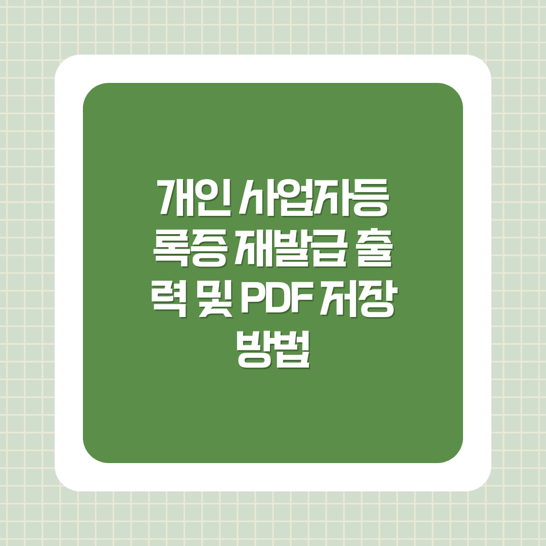 안녕하세요! 오늘은 개인 사업자등록증 재발급 출력 및 PDF 저장 방법에 대해 자세히 알아보려고 합니다. 개인 사업자등록증은 다양한 이유로 재발급이 필요할 수 있습니다. 사업자등록증이 훼손되거나 분실되는 경우가 대표적인 예입니다. 뿐만 아니라 상호명, 대표자 변경, 사업장 소재지 변경, 사업 종류의 변경 시에도 사업자등록증을 재발급받아야 합니다.