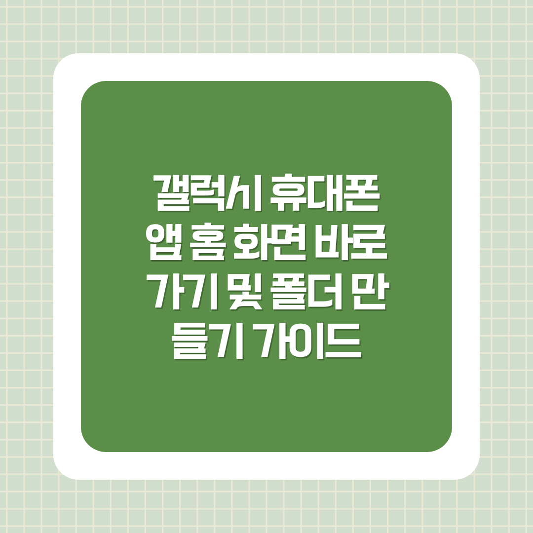 갤럭시 휴대폰을 사용하면서 앱을 효율적으로 관리하는 방법은 다양합니다. 그 중에서도 홈 화면에 자주 사용하는 앱의 바로가기를 추가하거나, 비슷한 앱들을 폴더로 묶어 관리하는 것은 매우 유용한 방법입니다. 이번 포스팅에서는 갤럭시 휴대폰을 보다 효율적으로 사용할 수 있도록 앱의 홈 화면 바로가기 추가와 폴더 만들기 방법을 상세히 안내하겠습니다.