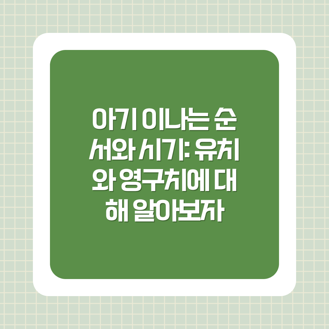육아를 하다 보면 아기의 발달 과정 중에서 치아가 나는 시기는 부모들에게 매우 중요한 관심사가 됩니다. 특히 유치와 영구치의 나는 순서와 시기는 아이의 구강 건강과 직접적인 연관이 있어 더욱 신경 쓰일 수밖에 없습니다. 이 블로그 포스팅에서는 아기의 유치와 영구치가 나는 순서와 시기에 대해 자세히 알아보도록 하겠습니다.