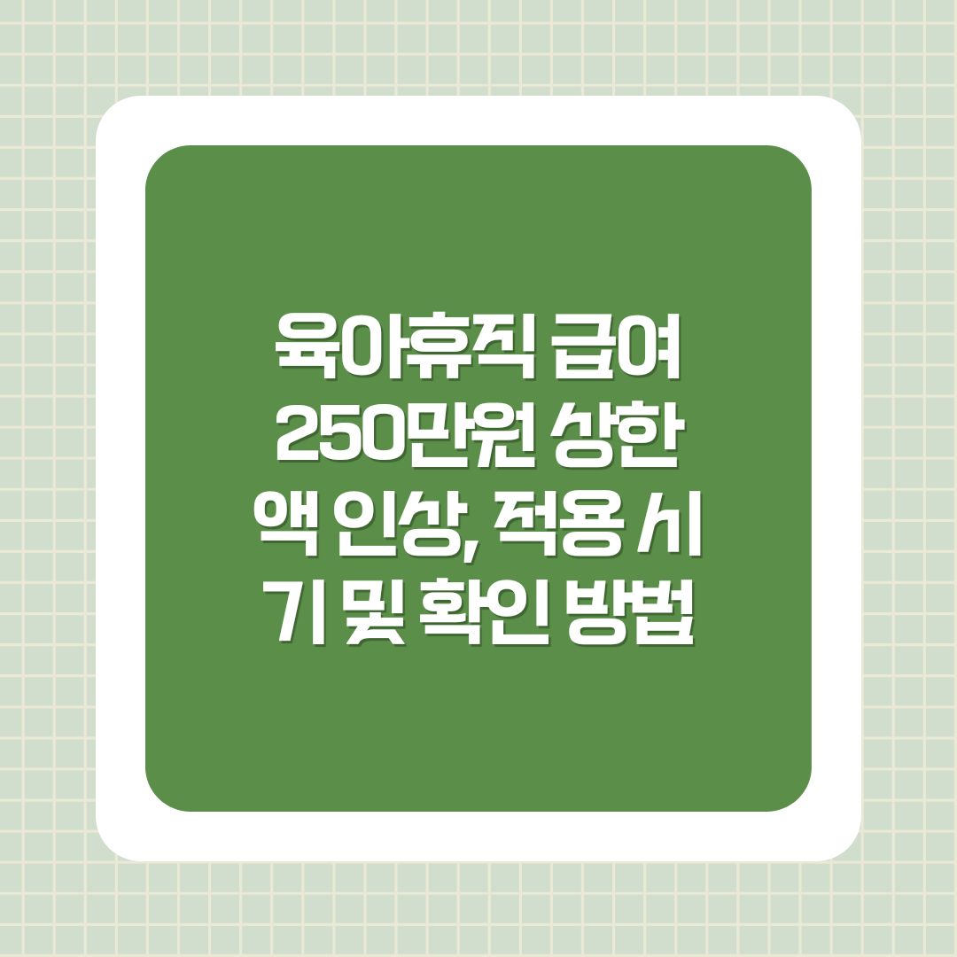 육아휴직 급여 상한액이 250만원으로 인상되었는지 여부를 확인하는 가장 확실한 방법은 고용보험 사이트를 확인하는 것입니다. 고용보험 사이트는 육아휴직 급여 관련 정보를 가장 최신으로 제공하며, 정책이 실제로 적용되었을 때 바로 업데이트됩니다.