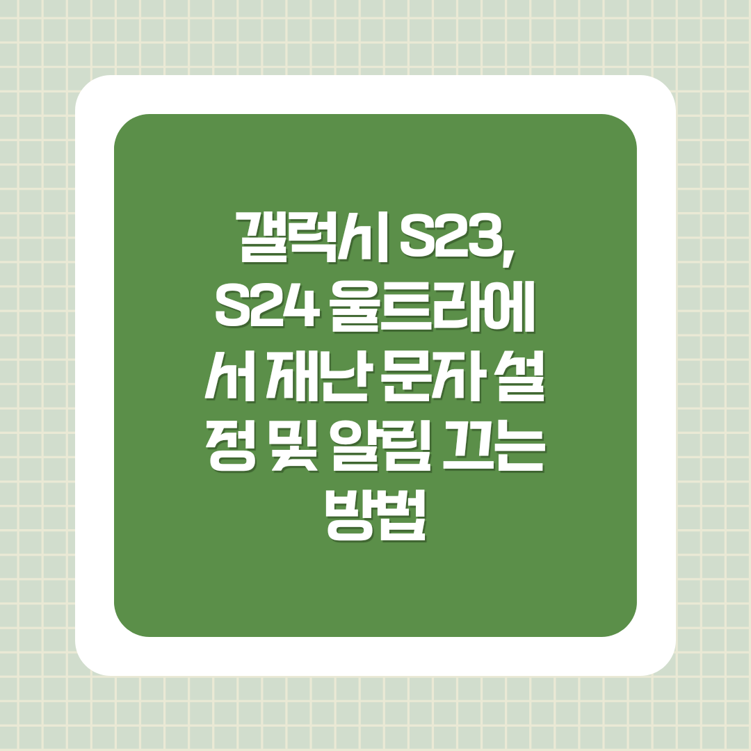 갤럭시 S23 울트라 기기에서 재난 문자를 설정하거나 알림을 끄는 방법을 알아보겠습니다. 아래의 단계별 가이드를 통해 재난 문자 설정을 손쉽게 관리할 수 있습니다.