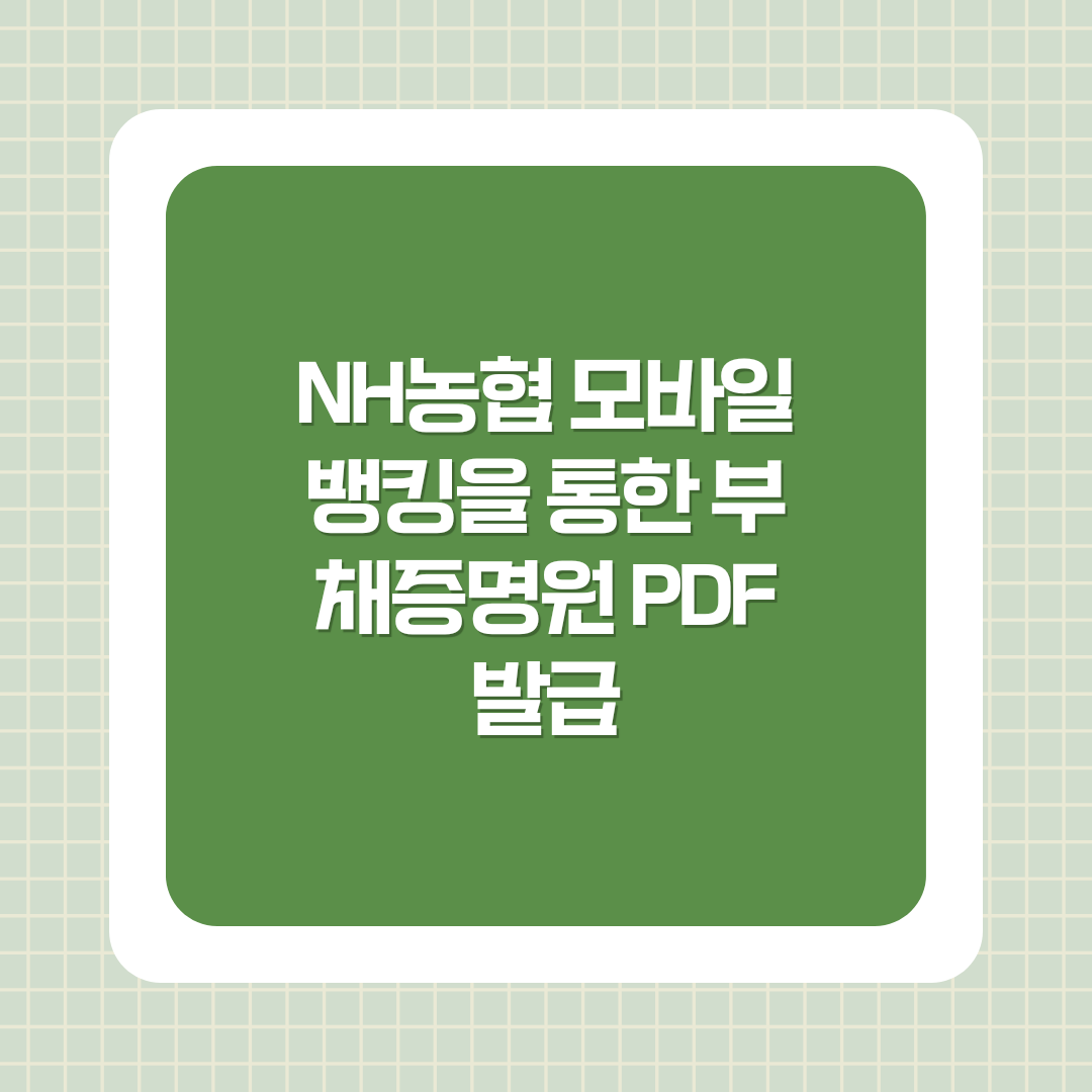 특히, NH농협은 모바일뱅킹을 통해 간편하게 부채증명원을 발급할 수 있는 서비스를 제공하고 있습니다. 모바일뱅킹을 이용하면 은행을 방문할 필요 없이 스마트폰을 통해 손쉽게 부채증명원을 PDF로 발급받고 인쇄할 수 있습니다. 이번 글에서는 NH농협 모바일뱅킹을 통해 부채증명원을 PDF로 발급받는 방법과 이를 인쇄하는 절차를 자세히 알아보겠습니다.