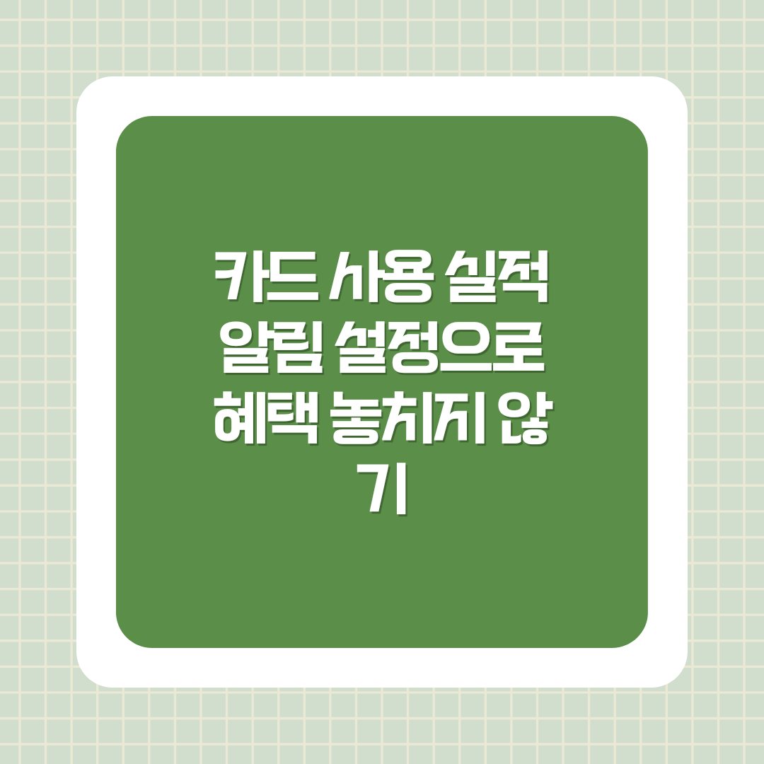 현대인들은 바쁜 일상 속에서 카드 사용 실적을 관리하기 어렵습니다. 하지만 카드 혜택을 받기 위해서는 월간 카드 사용 실적을 반드시 채워야만 하는데요, 이때 알림을 설정해두면 혜택을 놓치지 않고 받을 수 있습니다.