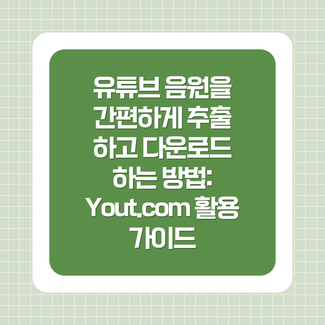 최근 유튜브의 다양한 콘텐츠를 활용해 음악이나 영상 파일을 개인적으로 저장하고 싶어하는 사람들이 많아지고 있습니다. 이런 경우, 특히 음원이나 영상 파일을 간단하게 추출할 수 있는 도구들이 큰 인기를 끌고 있는데요. 오늘은 그 중 하나인 Yout.com이라는 사이트를 소개하며, 유튜브 음원을 MP3 파일로 추출하는 방법을 자세히 알아보겠습니다.