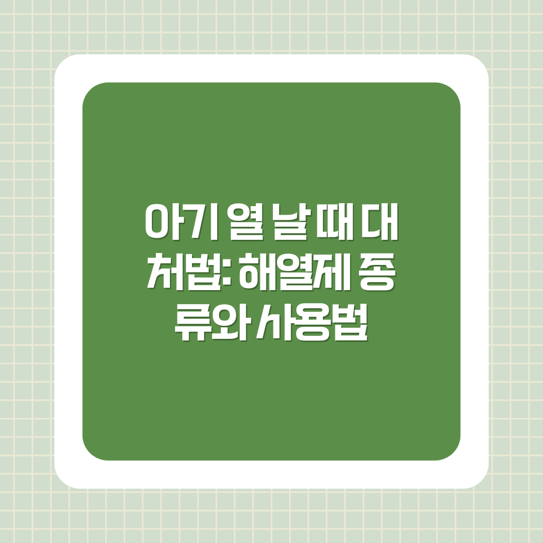 아기가 열이 날 때는 부모로서 어떻게 해야 할지 고민이 많아지기 마련입니다. 아기의 체온이 높아지면 해열제를 사용해야 하는지, 어떤 해열제를 어떻게 사용해야 하는지에 대한 궁금증을 풀어드리기 위해 해열제 종류와 올바른 사용법을 안내드립니다.