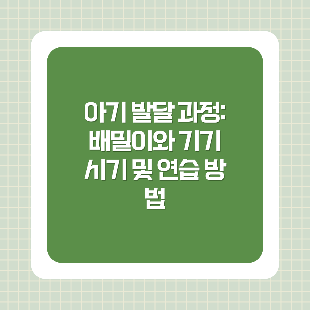 아기의 대근육 발달 과정은 부모에게 중요한 관심사입니다. 특히 배밀이와 기기는 아기의 성장 단계 중에서도 많은 부모님이 관심을 갖는 부분입니다. 아기마다 조금씩 차이는 있지만, 이 포스팅에서는 일반적인 배밀이와 기기 시기 및 연습 방법을 알아보겠습니다.