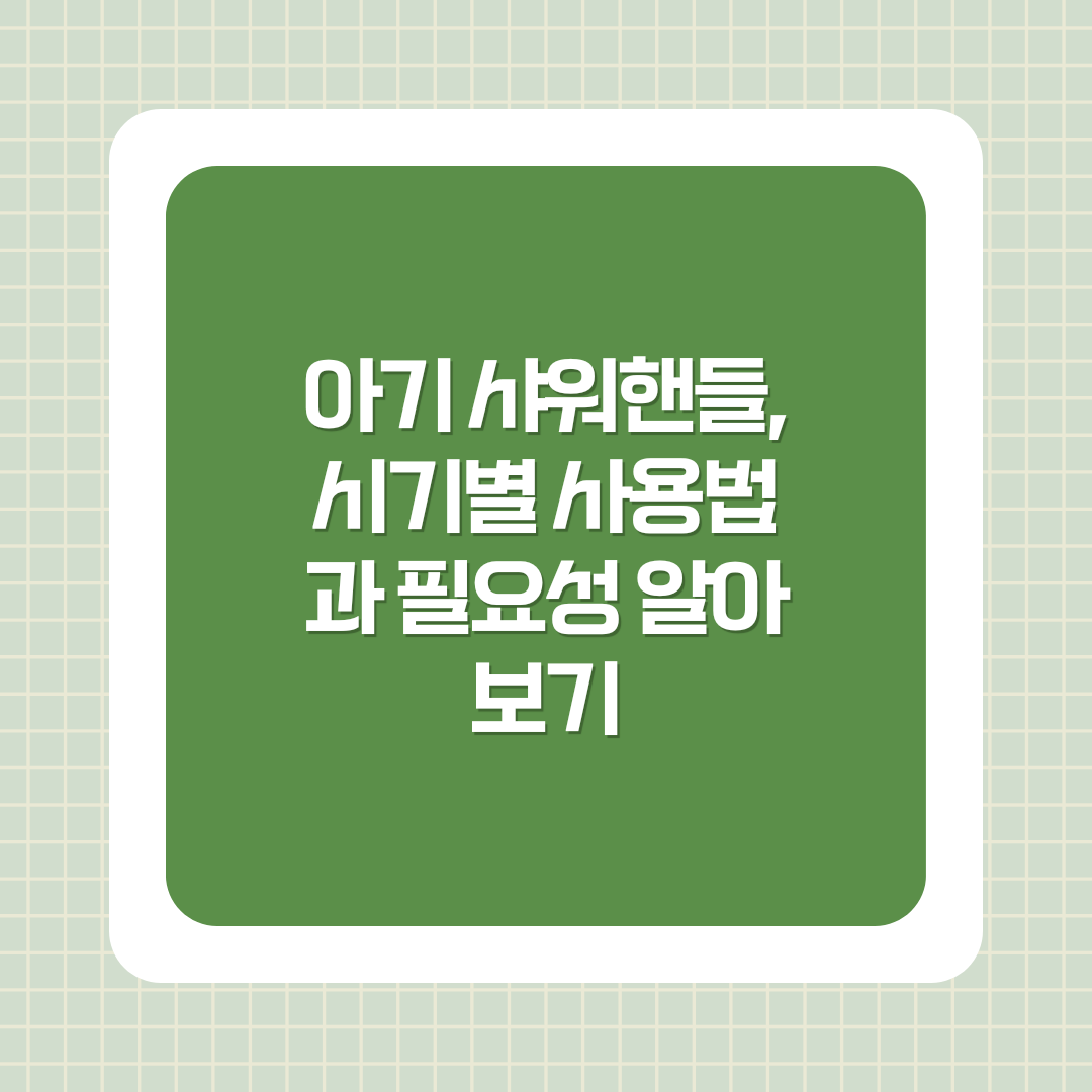 아기 목욕 도구 중 하나인 샤워핸들은 아기가 혼자 서 있을 수 있을 때부터 사용이 가능하며, 목욕 시간을 줄여주고 더 안전한 환경을 제공하는 유용한 육아 도구입니다. 아기가 성장하면서 사용할 수 있는 목욕 제품에는 어떤 것들이 있으며, 시기별로 어떤 제품을 선택하는 것이 좋은지 알아보겠습니다.