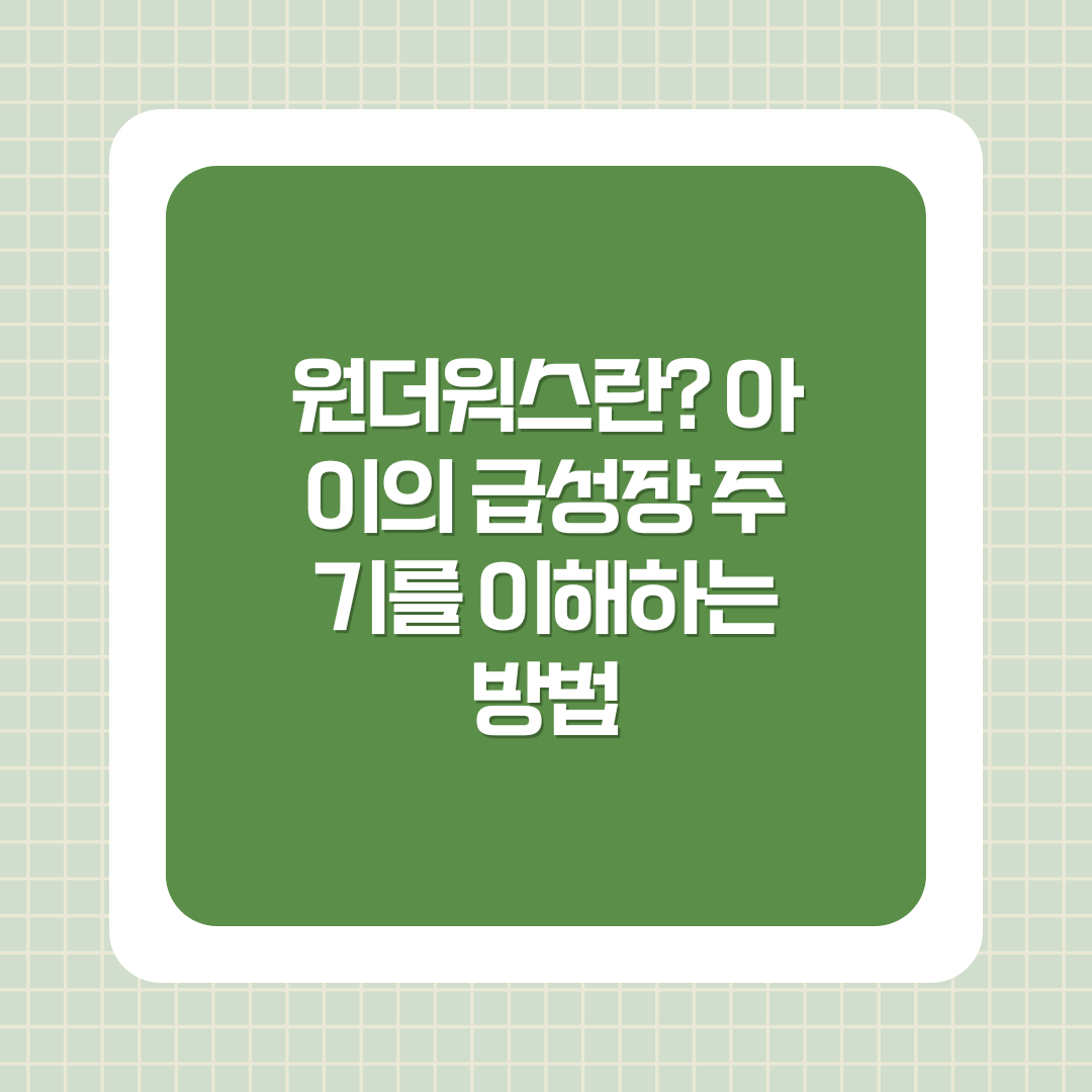 이처럼 원더윅스는 아이가 성장하는 과정에서 자연스레 겪게 되는 발달 주기로, 이를 이해하고 관찰하는 것은 부모와 아이 모두에게 큰 도움이 됩니다.
