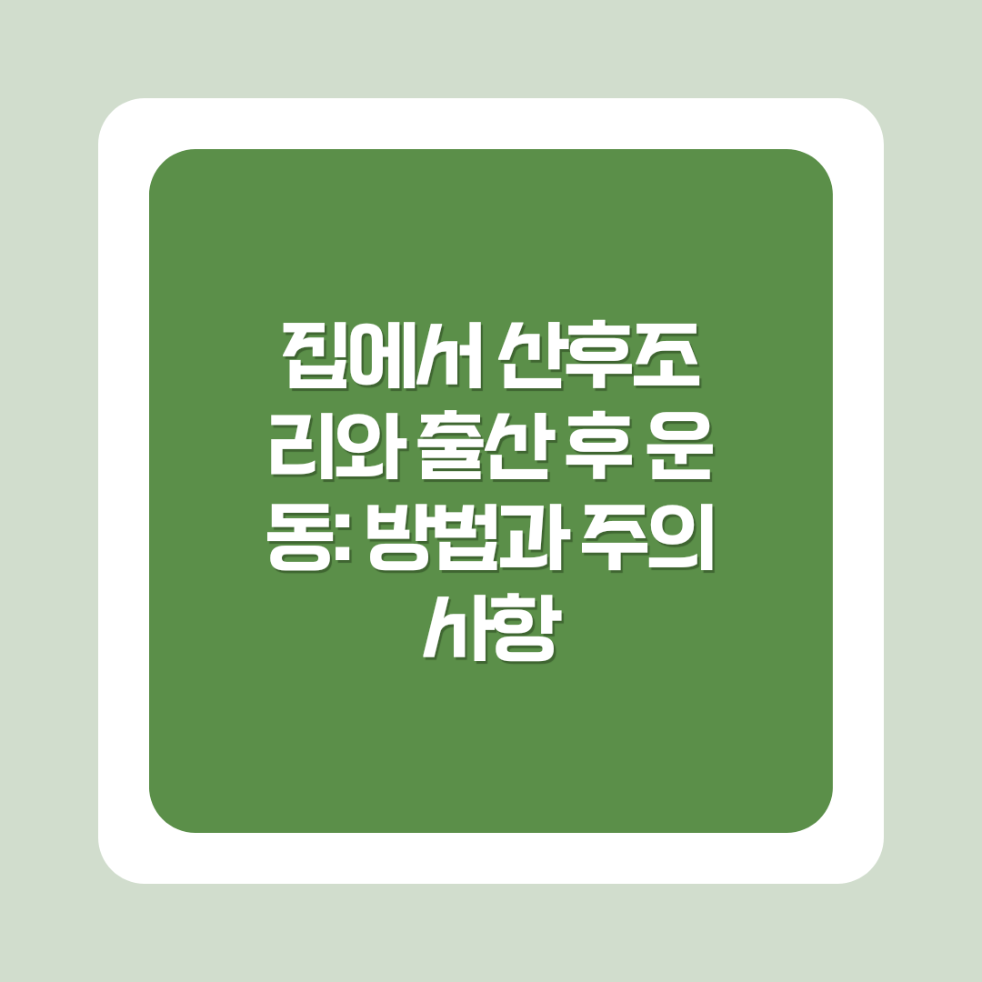 집에서 산후조리를 고려하고 계신 분들께는 신중한 준비가 필요합니다. 전문가의 조언을 참고하여 신체 상태에 맞는 조리를 계획하고, 출산 후 회복이 충분히 이루어진 후 운동을 서서히 시작해보세요.