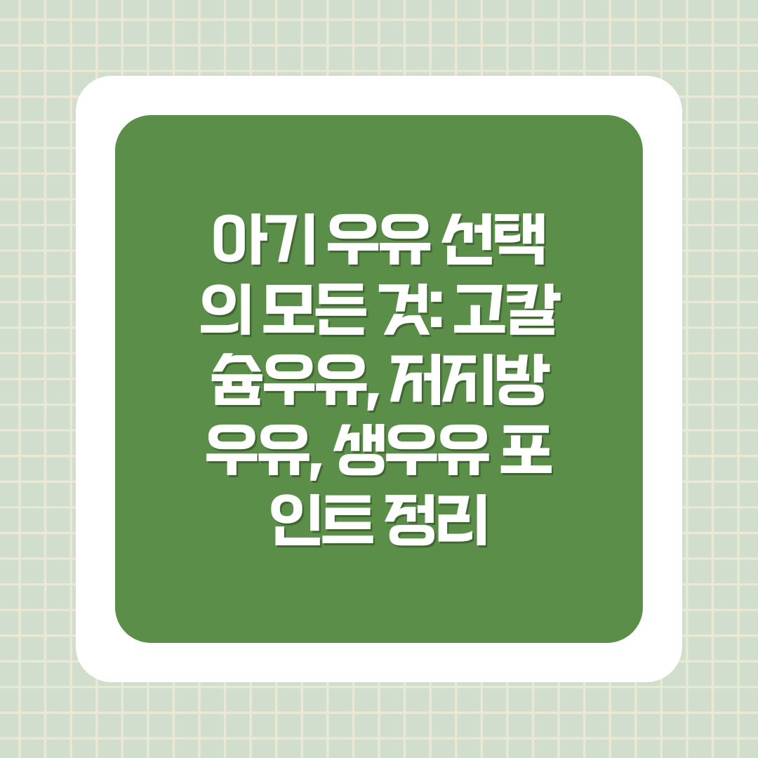 육아를 하는 부모들에게 아기에게 적합한 우유를 선택하는 것은 중요한 고민입니다. 다양한 선택지와 각 제품의 특성에 대해 알아두면 아이의 건강과 성장에 맞는 우유를 선택할 수 있습니다. 다음은 아기 우유 선택 시 고려할 다양한 포인트들입니다.