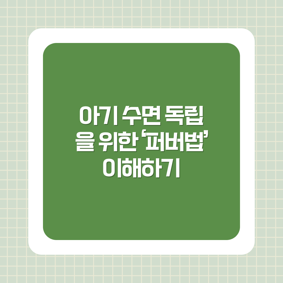 아기와 부모가 함께 자는 것은 자연스러운 일이지만, 어느 시점에서는 아이가 혼자 잠드는 것을 배우는 과정이 필요합니다. 특히 새로운 방에서 잠을 자려 할 때 아이가 겪는 두려움을 이겨내고 혼자 잠드는 법을 익히는 것은 중요한 성장 과정 중 하나입니다. 이를 돕기 위해 사용하는 여러 방법 중 ‘퍼버법’이 있습니다. 이 글에서는 퍼버법의 개념, 사용 시기, 방법, 장단점, 그리고 부모의 경험담을 통해 이 수면 교육법을 이해해 보겠습니다.