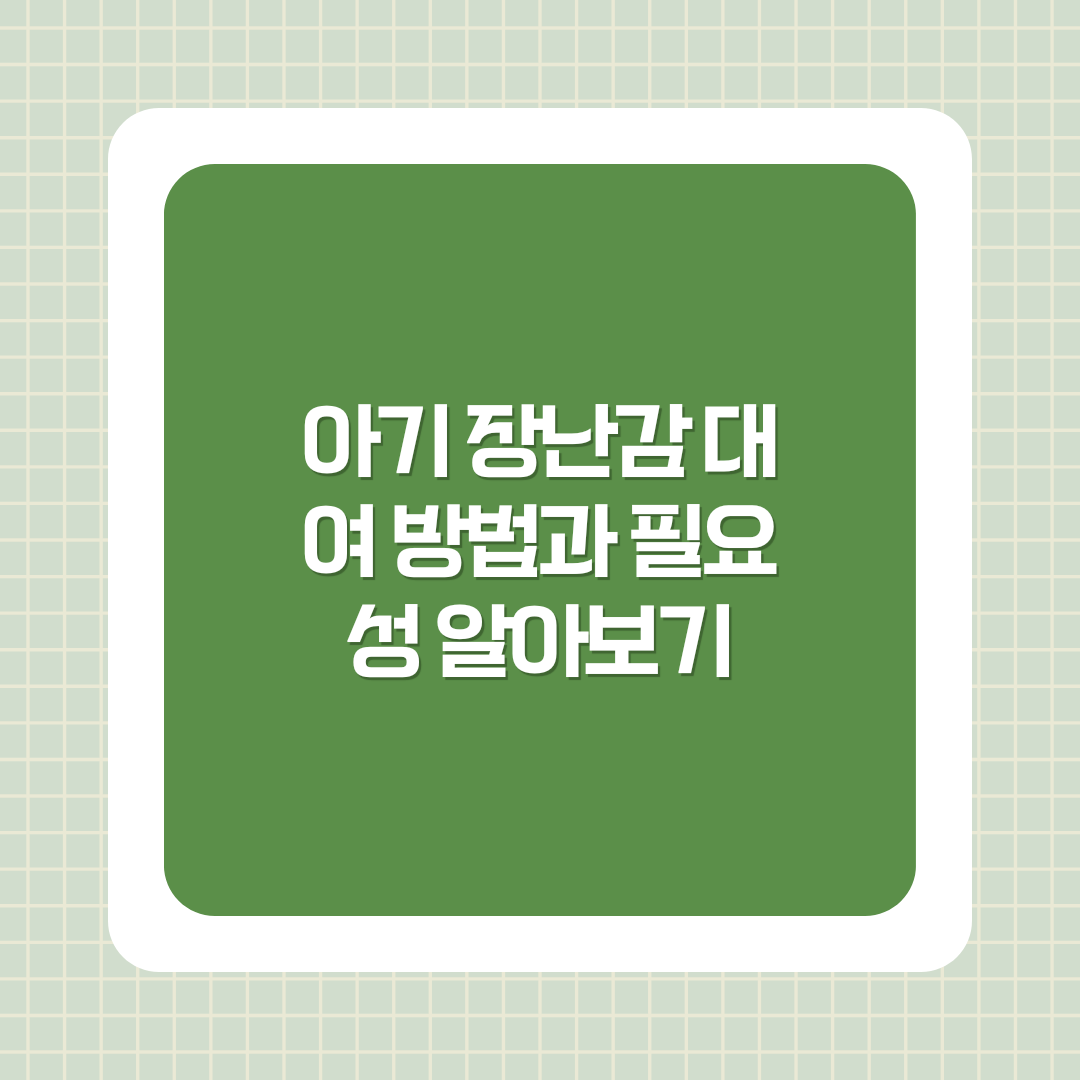 아기 장난감을 대여하는 방법에는 여러 가지가 있습니다. 지역 육아종합지원센터나 온라인 대여 서비스를 통해 필요할 때마다 다양한 장난감을 빌릴 수 있습니다.