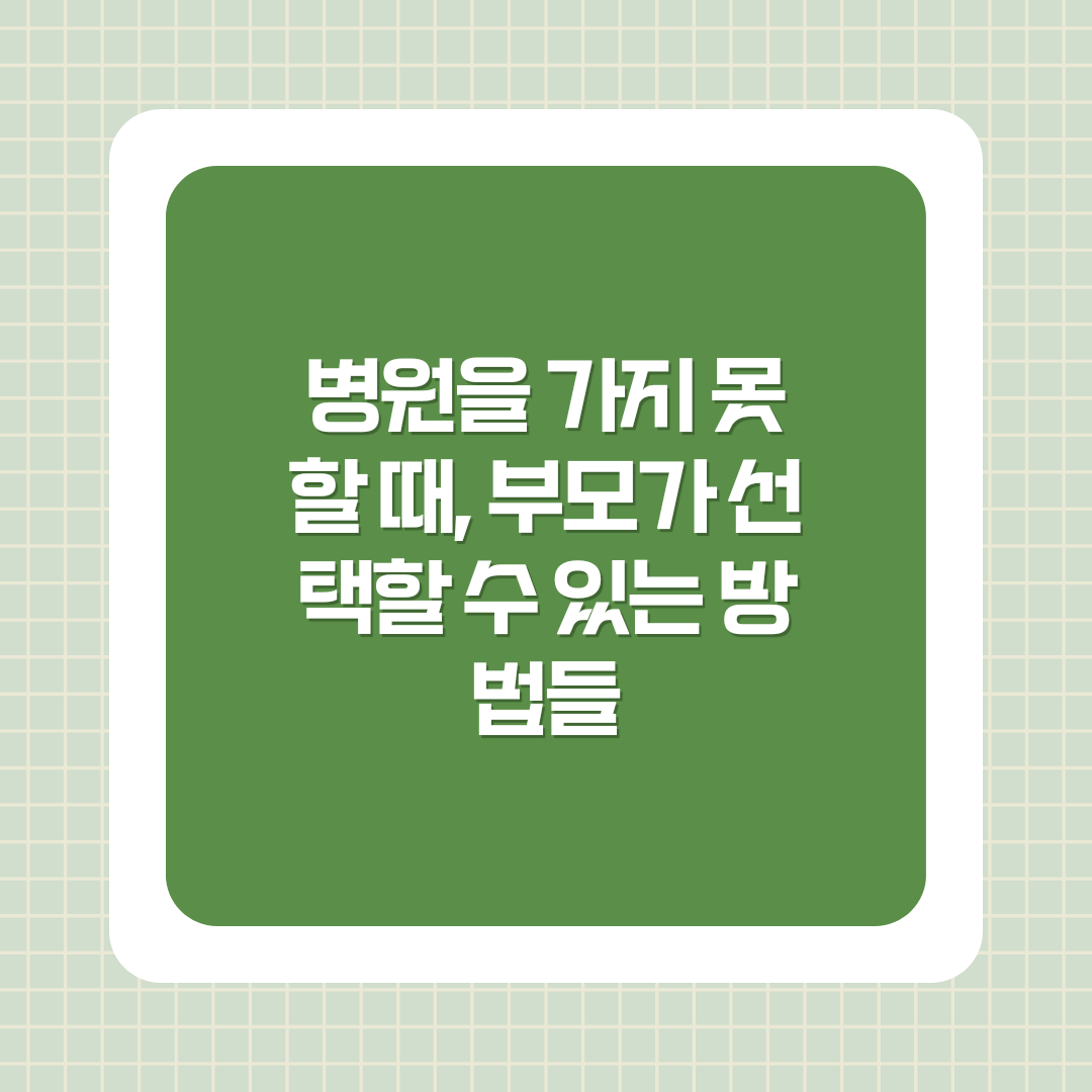 아이가 아플 때 무엇보다 중요한 것은 부모의 침착함과 빠른 대처입니다. 병원을 방문할 수 없는 상황에서는 위의 방법들을 통해 정보를 얻고, 아이의 상태를 정확히 파악해 적절히 대응하시기 바랍니다.