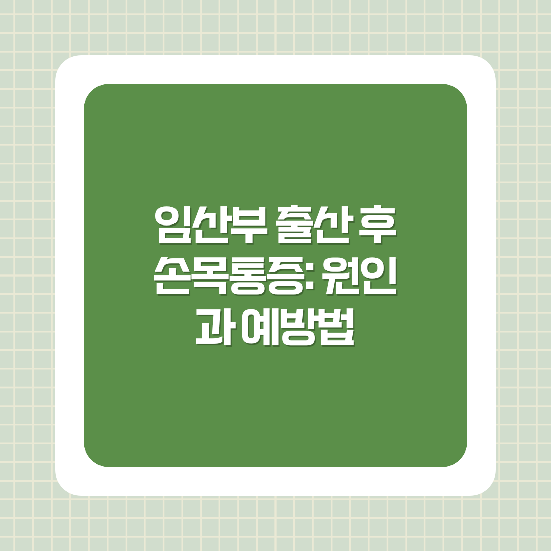 출산 후 많은 여성들이 경험하는 손목통증, 흔히 손목터널증후군에 대해 자세히 알아보고, 이를 예방하고 완화할 수 있는 방법을 제시하겠습니다.