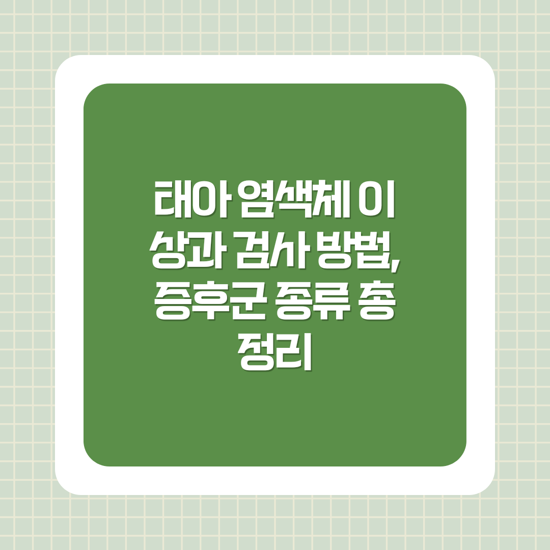 태아의 건강은 모든 부모에게 가장 큰 관심사 중 하나입니다. 그중에서도 염색체 이상으로 발생하는 증후군들은 태아 건강에 심각한 영향을 미칠 수 있기 때문에 조기 발견과 대응이 중요합니다. 이번 포스팅에서는 염색체 이상 증후군의 종류와 태아 상태에서 이를 확인할 수 있는 검사 방법들을 상세히 살펴보겠습니다.