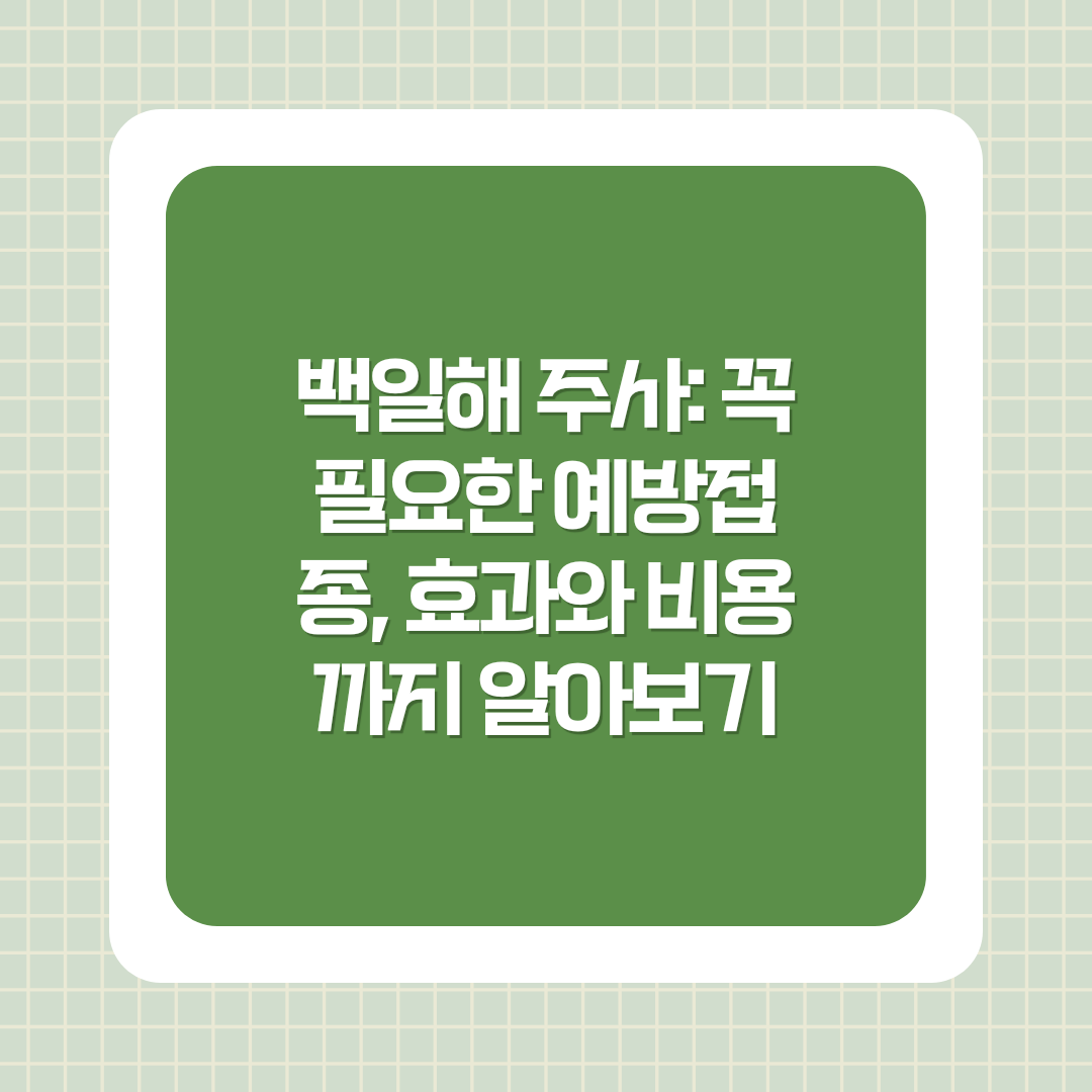 아이를 위한 예방접종은 필수적이지만, 성인들에게는 아직 이에 대한 인식이 부족합니다. 특히, 백일해 예방접종은 임산부와 아이를 돌보는 가족들에게 매우 중요합니다. 이 글에서는 백일해 주사의 효과, 접종 시기, 부작용 및 비용 등을 정리해보겠습니다.