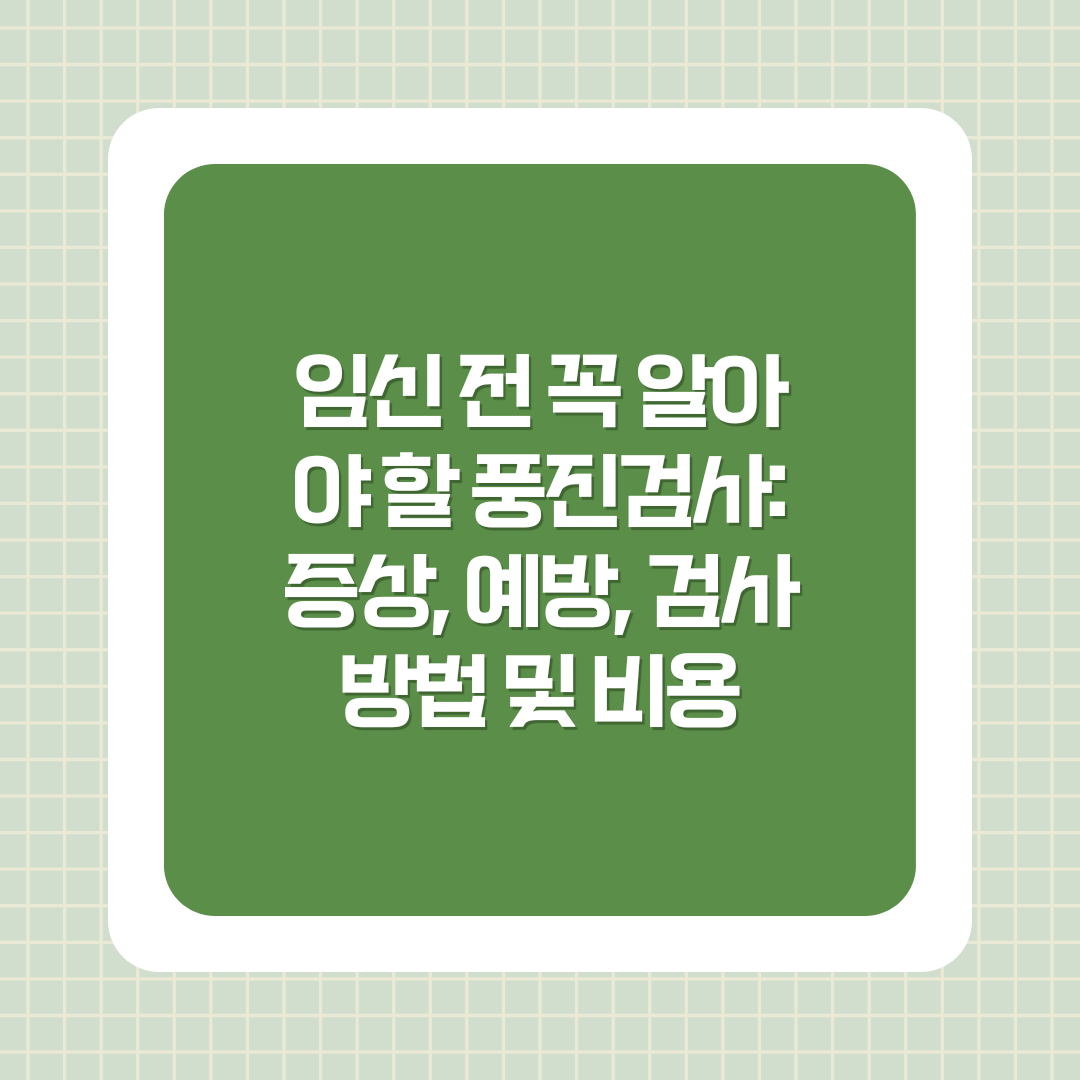 임신 전 건강검진 과정에서 풍진 항체 검사는 필수로 포함됩니다. 이 검사를 통해 풍진 항체 보유 여부와 현재 감염 상태를 확인할 수 있습니다.