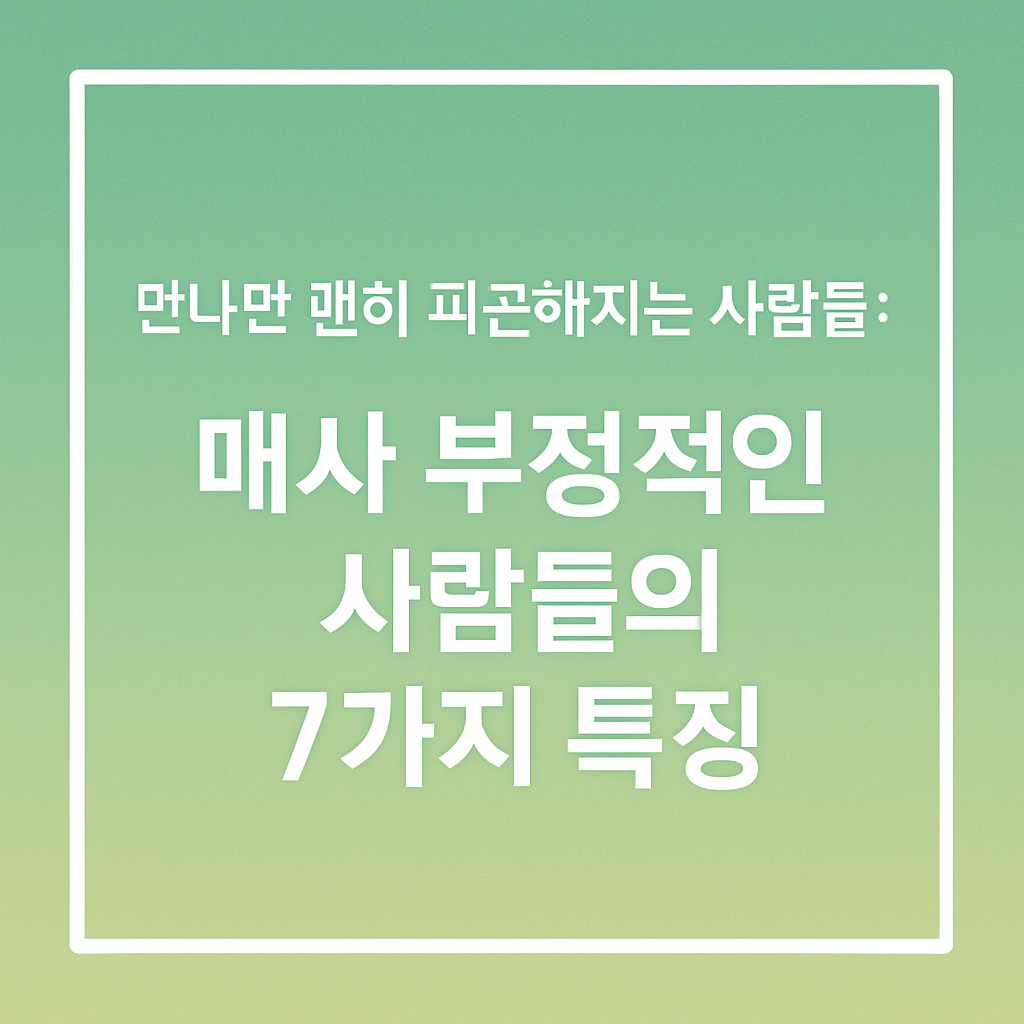 부정적인 사람은 누군가가 아니라, ‘나 자신’일 수도 있습니다. 나도 모르게 부정적인 말투와 태도로 주변을 지치게 만들고 있진 않았는지 돌아보게 됩니다.
