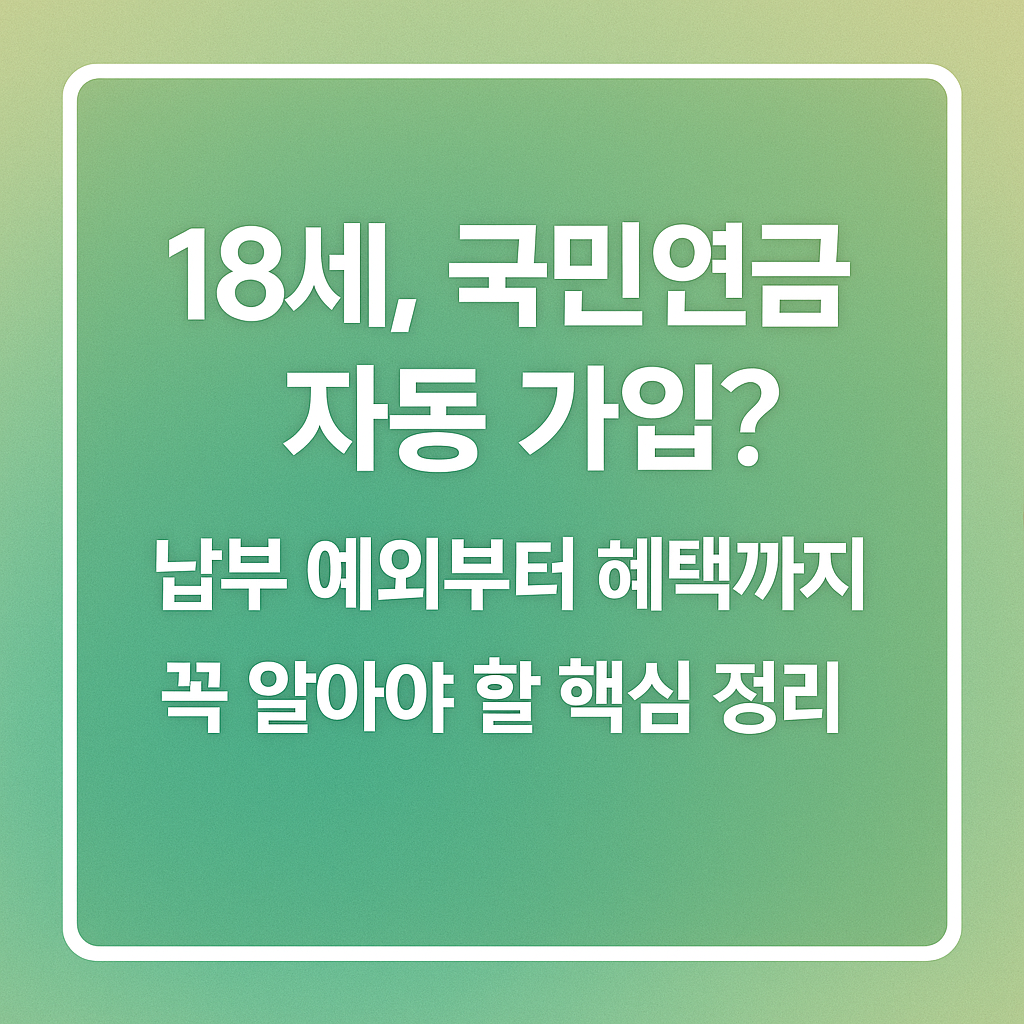 이제 국민연금은 단지 “나이 들어 받는 돈”이 아닙니다. 18세부터 자동가입이 되는 이 시점은, 어쩌면 나 자신과 가족을 위한 첫 번째 미래 설계일지 모릅니다.