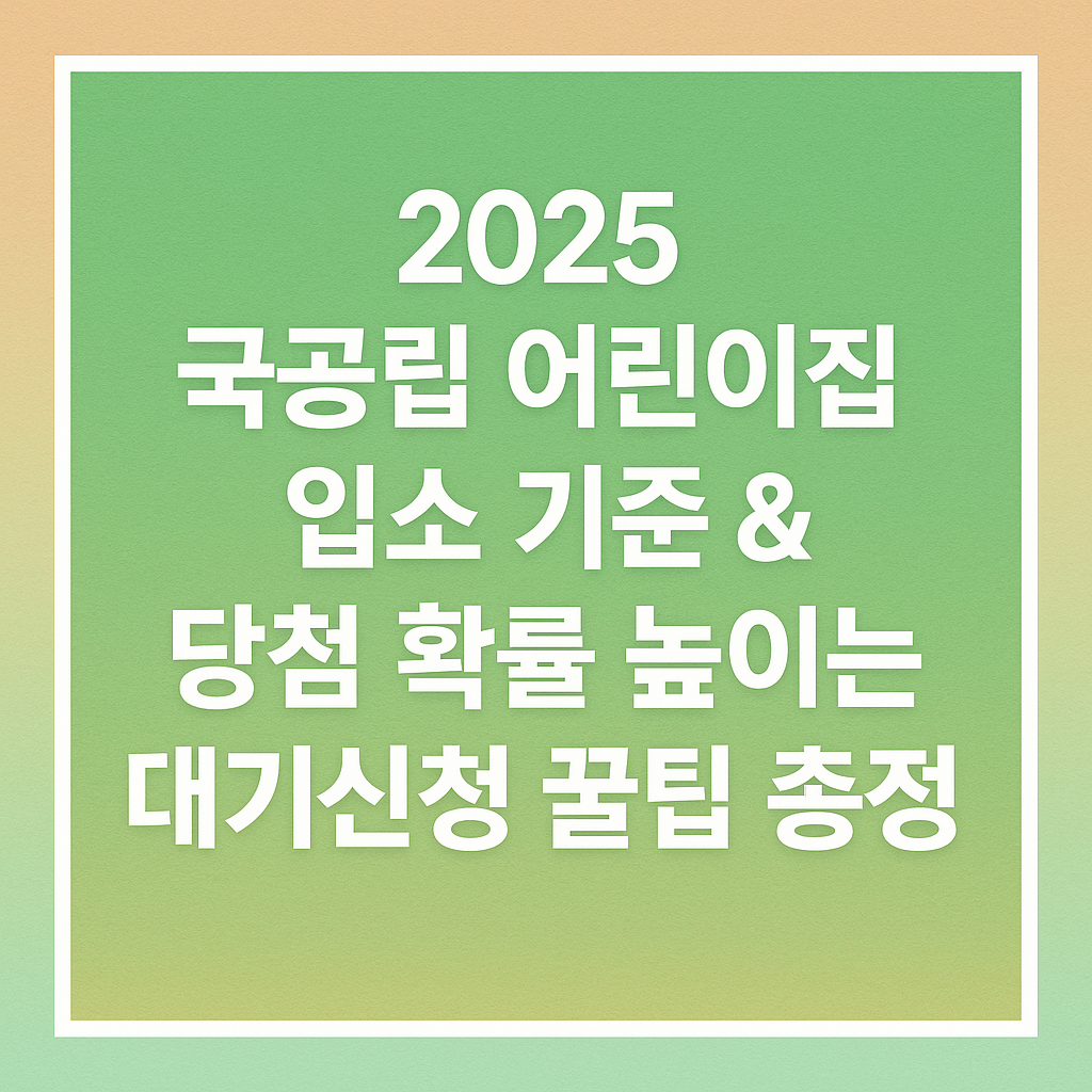 ✅ 2025 국공립 어린이집 입소 연령 기준 및 신청 조건