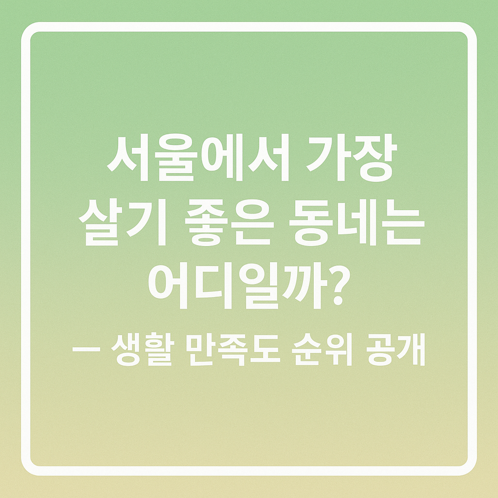 서울은 여전히 많은 사람들이 살고 싶어 하는 도시입니다. 하지만 높은 부동산 가격과 복잡한 생활 여건 때문에 떠나는 사람들도 적지 않죠. 그렇다면 실제로 서울 시민들이 체감하는 생활 만족도가 가장 높은 동네는 어디일까요?