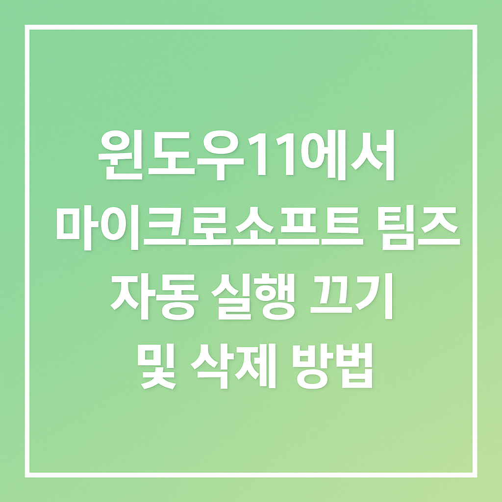 윈도우11에서 자동 실행되는 마이크로소프트 팀즈는 기업에는 유용하지만 개인에게는 불필요할 수 있습니다. 필요 없다면 완전히 삭제하여 시스템 리소스를 확보하고, 혹시 사용할 수 있을 것 같다면 자동 실행만 꺼두는 것이 가장 좋은 방법입니다.