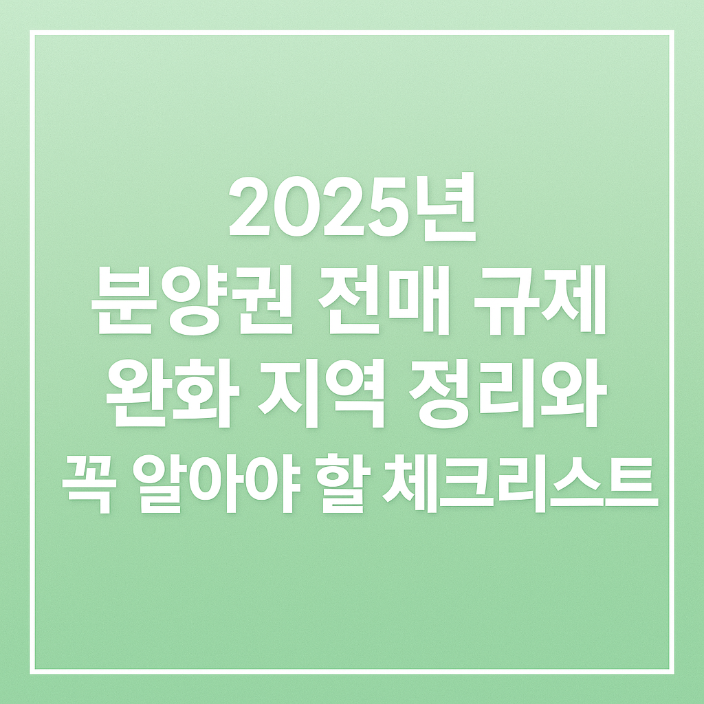 2025년 분양권 전매 규제 완화 지역 정리와 꼭 알아야 할 체크리스트