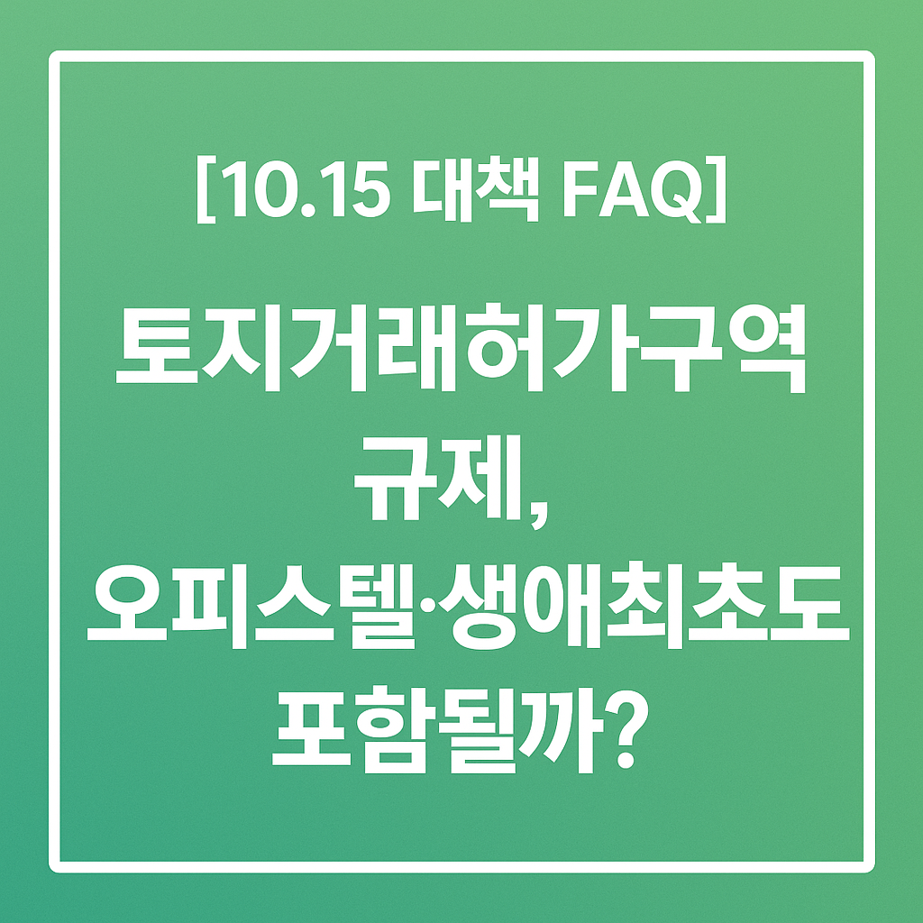 즉, 오피스텔·상가·근린생활시설 등 비주택은 이번 10.15 대책의 허가구역 규제 대상에 포함되지 않습니다.