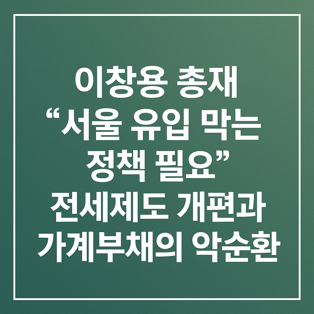 2025년 10월 20일, 국회 기획재정위원회 국정감사에서 한국은행 이창용 총재가 던진 발언이 부동산 시장에 큰 파장을 일으켰습니다. 그는 “전세제도 개편 없이는 가계부채 증가를 막을 수 없다”며, 서울 유입 억제 정책의 필요성까지 언급했습니다. 그의 발언은 단순한 제도 비판을 넘어 한국 부동산 시장의 구조적 문제를 다시금 수면 위로 끌어올렸습니다.