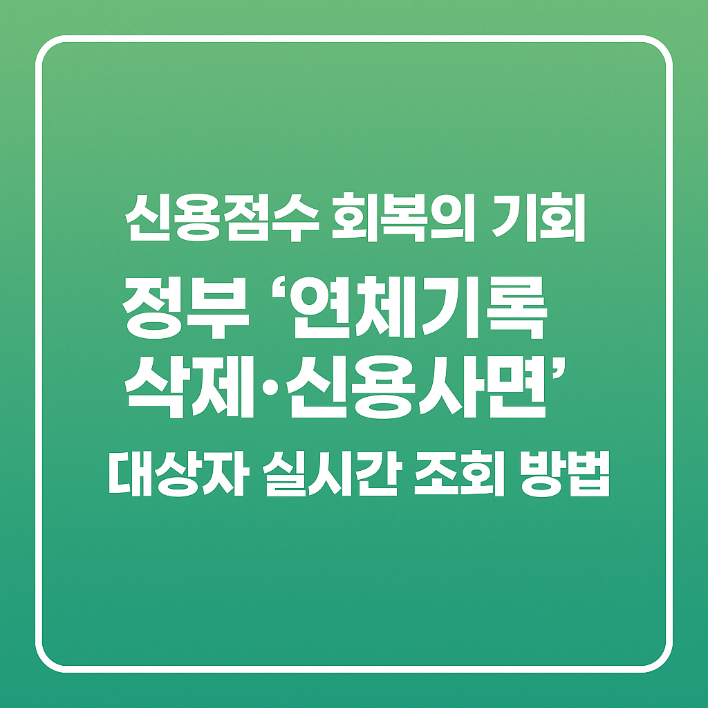 정부가 **‘연체기록 삭제 신용사면 제도’**를 본격 시행하면서, 일정 조건을 충족한 사람은 별도 신청 없이 연체 이력 삭제 및 신용회복이 가능합니다.