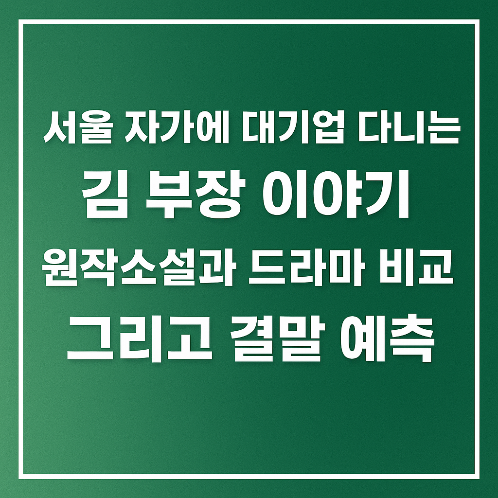 요즘 드라마 <서울 자가에 대기업 다니는 김 부장 이야기>가 화제의 중심에 서 있습니다. 제목부터 현실적이고 독특한 이 작품은, 한국 사회에서 ‘성공’이라는 단어의 이면을 가장 생생하게 보여주는 드라마이자 소설이죠. 누구나 부러워할 법한 ‘서울 자가’와 ‘대기업 근무’라는 조건을 갖췄지만, 정작 그 안의 주인공 ‘김 부장’은 늘 벼랑 끝을 걷는 듯한 불안 속에서 살아갑니다.
