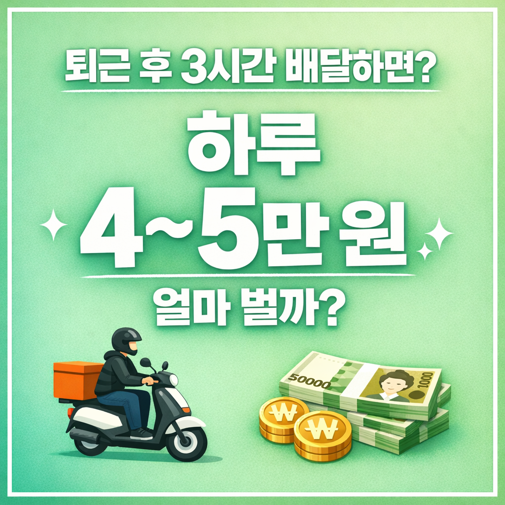 👉 퇴근 후 3시간 배달 = 현실적으로 4~5만 원 정도 벌린다고 보면 정확함