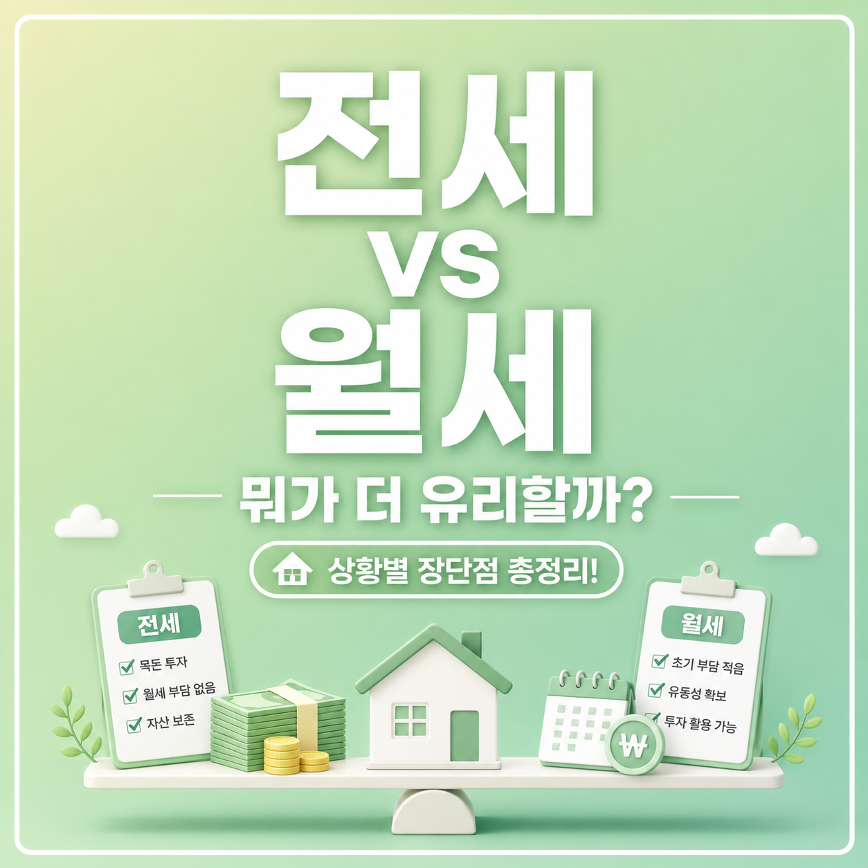 👉 목돈 운용 수익이 월세보다 크면 월세, 아니면 전세가 정답입니다.