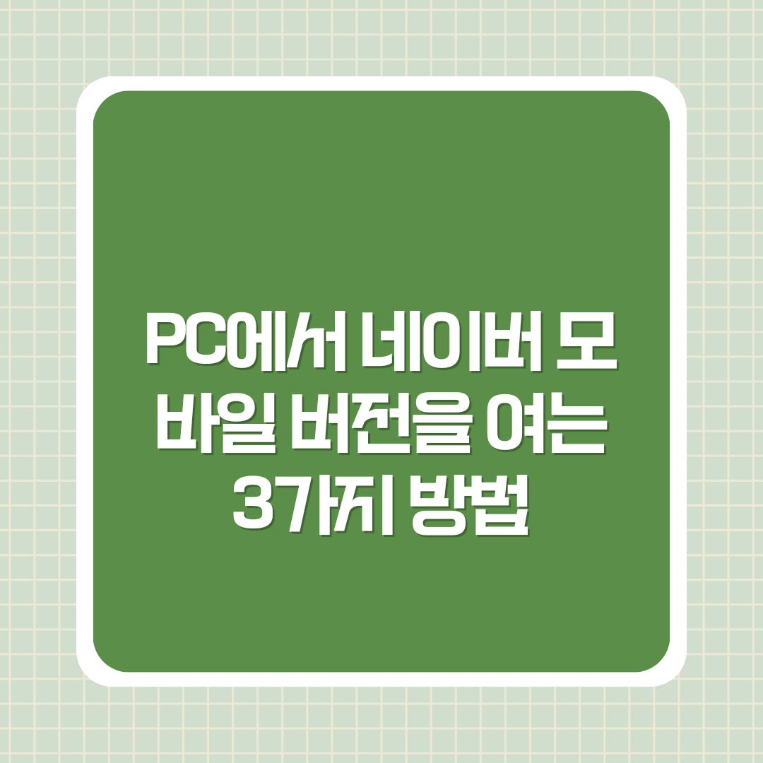그래서 이번 블로그 포스트에서는 PC에서 네이버 모바일 버전을 여는 3가지 방법을 소개하고, 각 방법의 장단점을 비교해드리겠습니다. 상황에 맞게 적절한 방법을 선택해 사용해보세요!